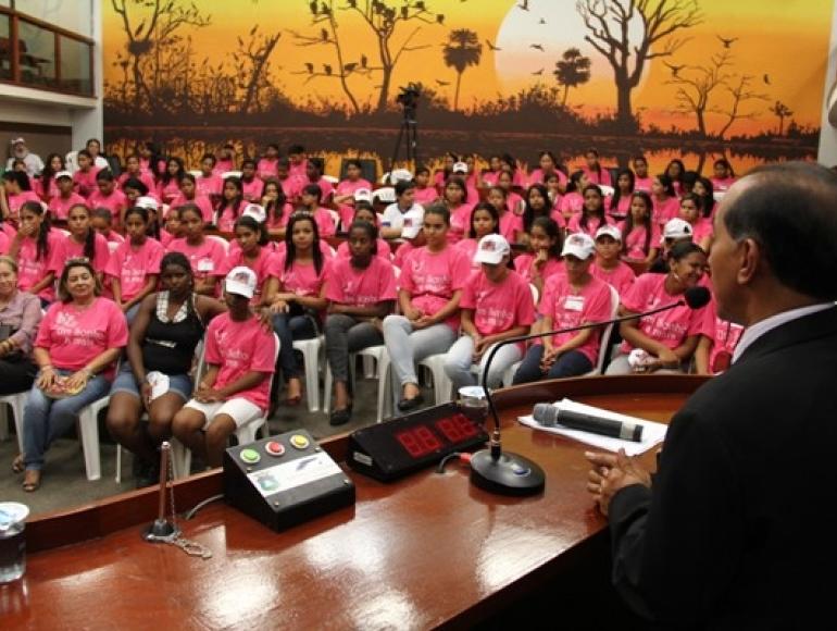 Cerca de 100 adolescentes do Projeto “Um Sonho a Mais”, mantido pela Prefeitura de Cuiabá, visitaram a Câmara Municipal nesta manhã (11). A visita faz parte de uma extensa programação, que inclui um “city tour” para oferecer as participantes do projeto um reconhecimento do patrimônio sócio-cultural da cidade.