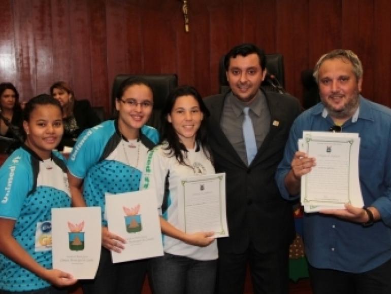 Estiveram no plenário representando a equipe o técnico do time, Marcos Rosa Pena e as jogadoras, Gabriela Fernandes, Caterine Lucena e Suelen Ferreira.