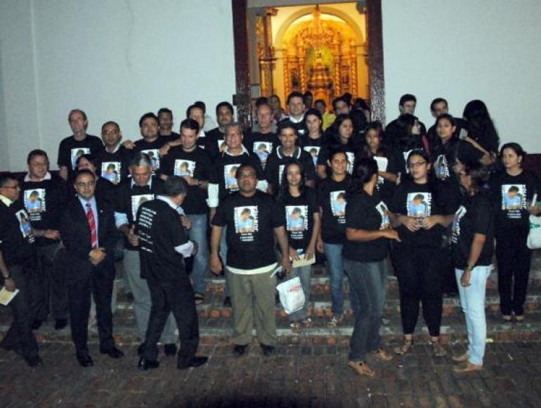 Familiares e amigos do jornalista Auro Ida, 53, brutalmente assassinado no último dia 21, no Jardim Fortaleza (Grande Coxipó), periferia de Cuiabá, aproveitaram a Missa de 7º Dia, na Igreja de São Benedito e de Nossa Senhora do Rosário, na noite desta quarta-feira (27/07), para exigir justiça, com a elucidação o crime e a punição exemplar dos culpados. Vestidos com camisetas negras, com a foto de Auro estampada, mais de 150 pessoas, a maioria jornalistas, participaram da Missa de 7º Dia, celebrada pelo padre Celso Bueno.