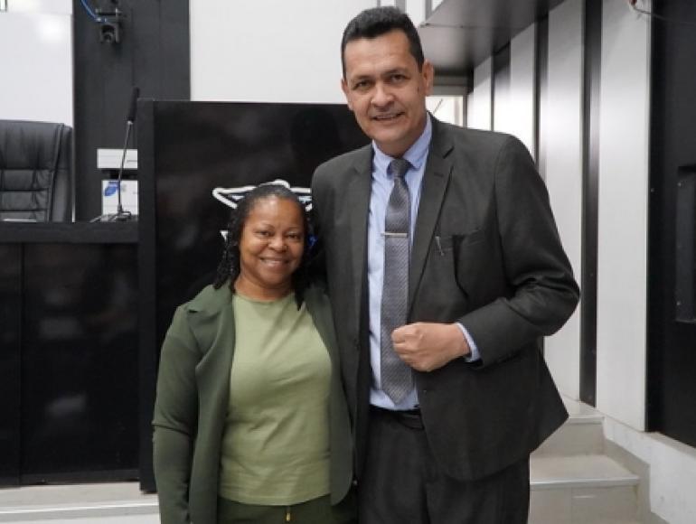 A Câmara Municipal de Cuiabá recebeu, na quinta-feira (25), a presidente da Associação de Moradores do bairro Areão, Nely Lúcia de Souza. A convite do vereador Kássio Coelho (Podemos), a líder falou sobre a importância da atenção básica voltada à pessoa idosa e como o trabalho desenvolvido pela associação contribui para isso.