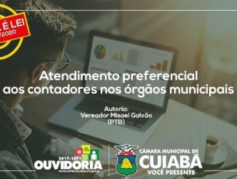 Já foi sancionada a Lei nº 6.535/2020, de autoria do Presidente Misael Galvão (PTB), que libera o atendimento preferencial aos contadores nos órgãos municipais de Cuiabá. As localidades também deverão oferecer um espaço com computador e sinal de internet.