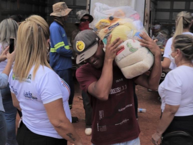 Os catadores que atuam no aterro sanitário de Cuiabá receberam, na manhã desta quarta-feira (27), cestas básicas que foram arrecadadas durante a campanha "Boa Ação é Doação". A ação desenvolvida pela Sala da Mulher da Câmara Municipal de Cuiabá recolheu toneladas de alimentos que estão sendo destinados a famílias em situação de vulnerabilidade.