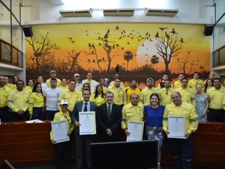 Durante a sessão solene, o vereador entregou uma Moção de Aplausos a cada um dos 25 agentes de trânsito que, simbolicamente, representaram toda a categoria. Entre os homenageados está o diretor de Transporte da Secretaria de Mobilidade, Nicolau Jorge Budib.