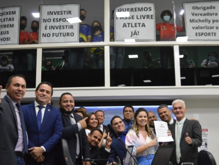 A Câmara de Cuiabá aprovou nesta terça-feira (21.12) projeto de lei de autoria da vereadora Michelly Alencar (DEM) que estabelece passe livre para atletas no transporte público de Cuiabá. O objetivo é contribuir para que jovens e crianças permaneçam em projetos esportivos. O projeto aprovado vai agora para sanção do prefeito.