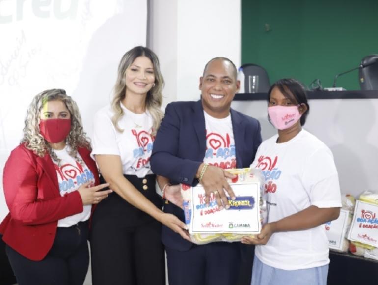 Dez mulheres chefes de famílias que moram em Cuiabá e passam por situação de vulnerabilidade social foram as primeiras a receberem as cestas básicas arrecadadas durante a campanha "Boa Boa Ação é Doação", da Câmara Municipal de Cuiabá. A ação foi finalizada nesta quinta-feira, 7 de outubro, com um marco histórico no Legislativo.&nbsp