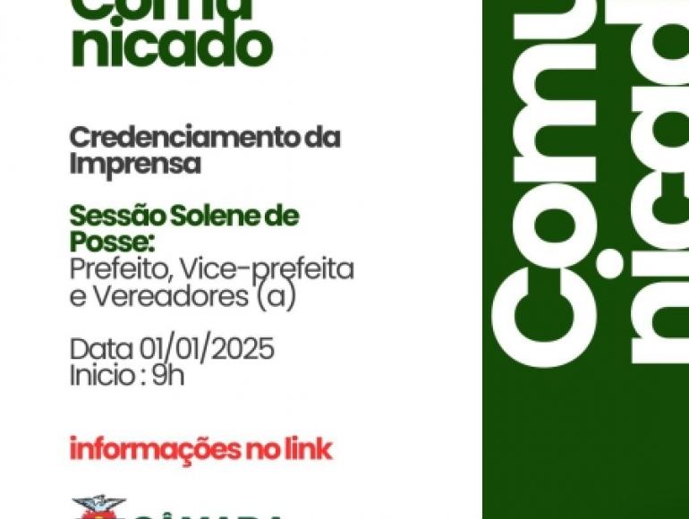 Informamos que os veículos de comunicação que farão a cobertura do evento devem estar devidamente credenciados, com seus nomes confirmados, junto à Secretaria de Comunicação da Câmara Municipal de Cuiabá.