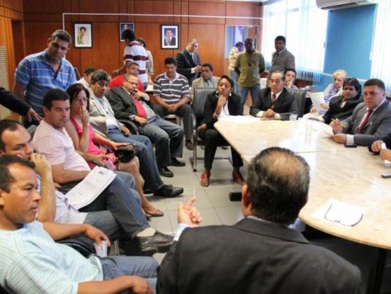 A reunião na Presidência da Câmara foi deliberada para acalmar os ânimos dos servidores da Sanecap que promoveram manifestação durante a sessão ordinária, até mesmo invadindo o plenário do Legislativo. Suspensa a sessão, o presidente Arnaldo Penha convocou os representantes da categoria para conversar com os parlamentares e expor as reivindicações.