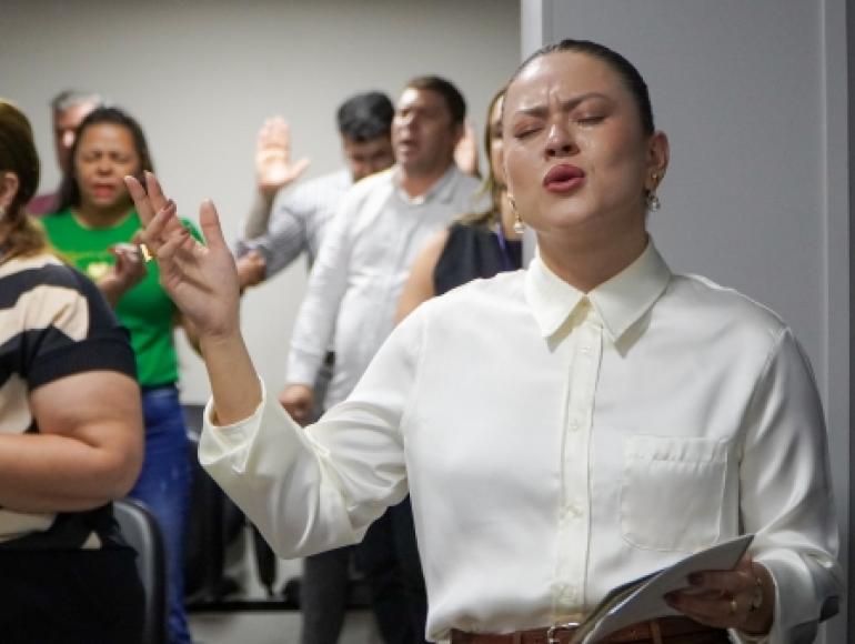 Encerrando a programação especial no mês das mulheres, a Sala da Mulher da Câmara de Cuiabá realizou a palestra “Mãos que Abençoam”, para os servidores, na manhã desta segunda-feira (31). Idealizado por Jacqueline Pio, o projeto busca transformar a vida das pessoas através da palavra de Deus.
