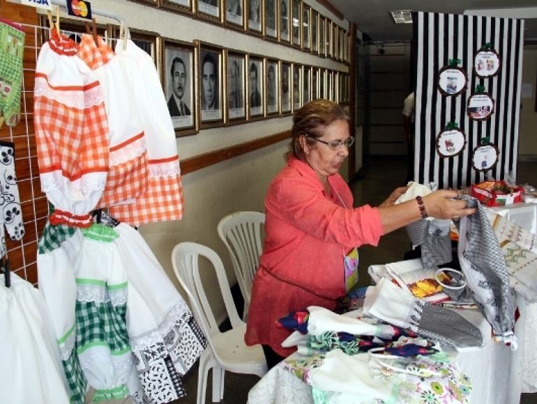 A artesã Dinazara Butierrez trouxe para a Casa de Leis diversos artigos para serem comercializados, entre eles, puxa-sacos, panos de prato, jogos de toalha, pegadores de forno e jogos de cozinha (com 6 peças), todos bordados a mão.