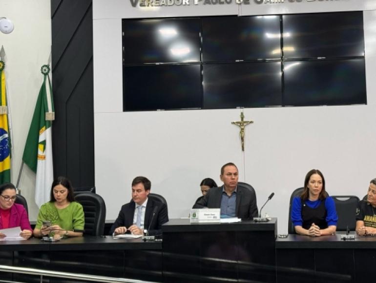 Em audiência pública realizada na manhã desta sexta-feira (21), a Câmara de Cuiabá recebeu Daniel Bogo, representante da empresa Costa Oeste Ltda., para prestar esclarecimentos sobre o processo de contratação e as denúncias relacionadas aos benefícios dos Cuidadores de Alunos com Deficiência (CADs). A convocação foi feita pelo vereador Dilemário Alencar (União Brasil).
