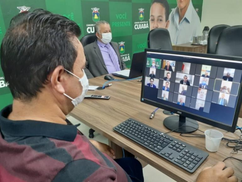 A Câmara Municipal de Cuiabá realizou na manhã desta quinta-feira, dia 26, a sua primeira sessão remota via plataforma digital. O Parlamento da Capital foi o pioneiro no Estado a utilizar deste sistema para garantir a continuidade dos trabalhos legislativos diante da pandemia do novo Coronavírus (Covid-19).