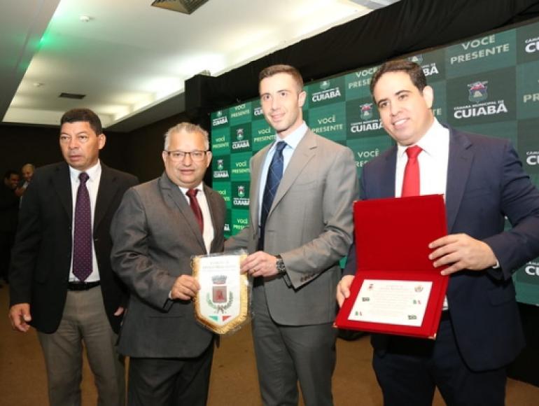 Durante a sessão solene desta terça-feira (10) em homenagem aos 300 anos de Cuiabá, a Câmara Municipal recebeu uma comenda vinda da cidade de Comune di Oppido Marmetina, na Itália, marcando o elo entre as cidades e presenteando Cuiabá pelo aniversário.