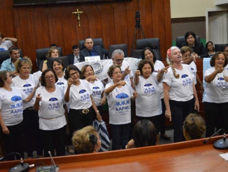 A Câmara Municipal de Cuiabá realizou, nesta quarta-feira (09.04), uma Sessão Solene em homenagem aos 10 anos de fundação da Associação dos Aposentados e Pensionistas da Prefeitura de Cuiabá - AAPMC. O evento, que ocorreu por requerimento do vereador Dilemário Alencar (PROS), lotou o plenário da Câmara. Também foi prestada homenagem, com a entrega de Moções de Aplausos a diversas pessoas que nos últimos anos contribuíram com o êxito da associação.
