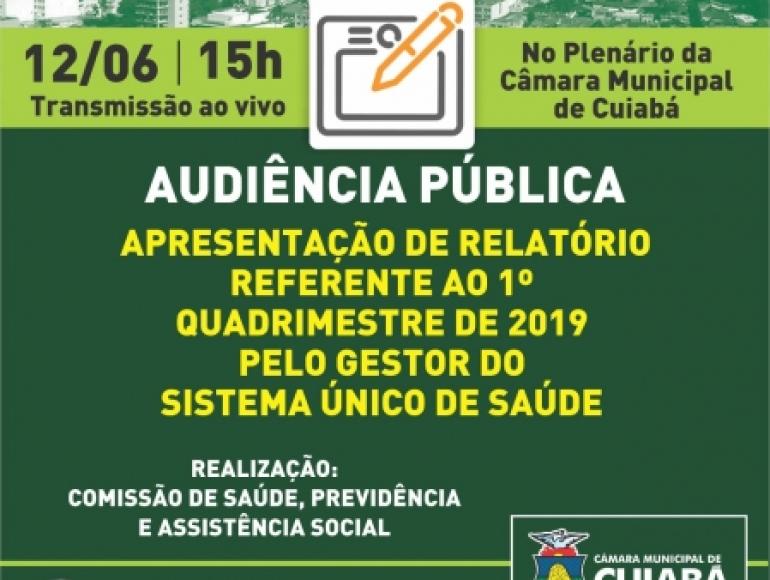 A Câmara Municipal de Cuiabá realiza nesta quarta-feira (12) uma audiência pública para apresentação do relatório referente ao 1º quadrimestre de 2019 do Sistema Único de Saúde (SUS).&nbsp
