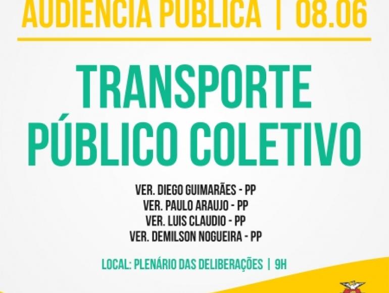 A Câmara Municipal de Cuiabá realiza uma Audiência Pública nesta sexta-feira (09) às 09h00 no Plenário das Deliberações. Os vereadores pepistas: Diego Guimarães, Demílson Nogueira, Luis Claudio e Paulo Araújo requereram a audiência na qual se discutirá o Transporte Público Coletivo na Capital, bem como assuntos correlatos que visem à melhoria no trânsito de Cuiabá.