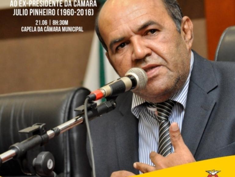 Nesta quarta-feira (21), às 08h:30, na capela da Câmara será realizado um culto ecumênico para lembrar e homenagear o ex-presidente do legislativo municipal, Júlio Pinheiro. Ele faleceu no ano passado, no dia 20/06/2016, aos 56 anos de idade em decorrência de uma parada cardíaca, agravada pelo diabetes e pela hipertensão.
