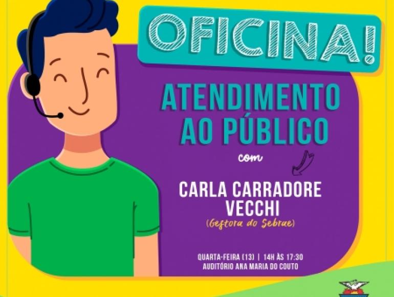 A oficina será ministrada pela gestora do Sebrae, Carla Carradore Vecchi, e dentre vários assuntos, a oficina abordará temas como: relacionamento interpessoal, conhecimento de diferentes tipos de pessoas, público externo e interno, comportamentos, padronização de atendimento, como dizer não educadamente, pró-atividade.