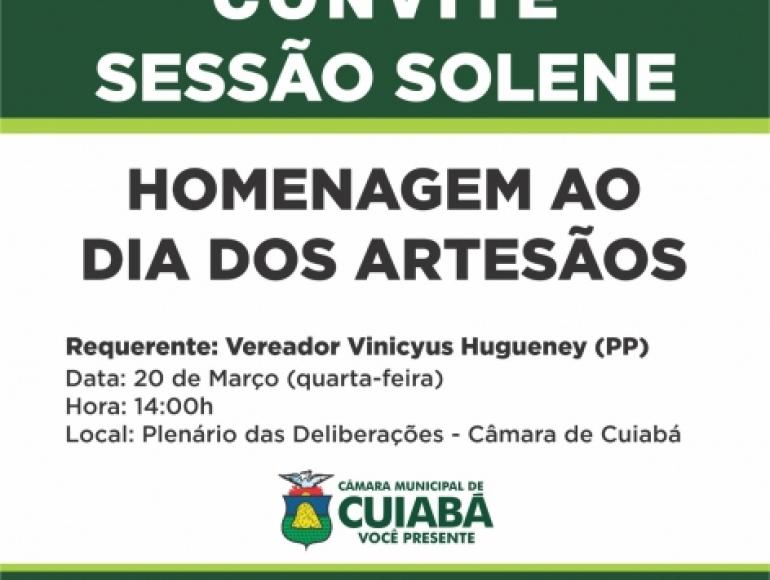 Requerida pelo vereador Vinicius Hungueney (PP), a solenidade visa reconhecer o trabalho prestado pelos artesões cuiabanos em prol do município. Desta forma, serão entregues diversas moções de aplausos.