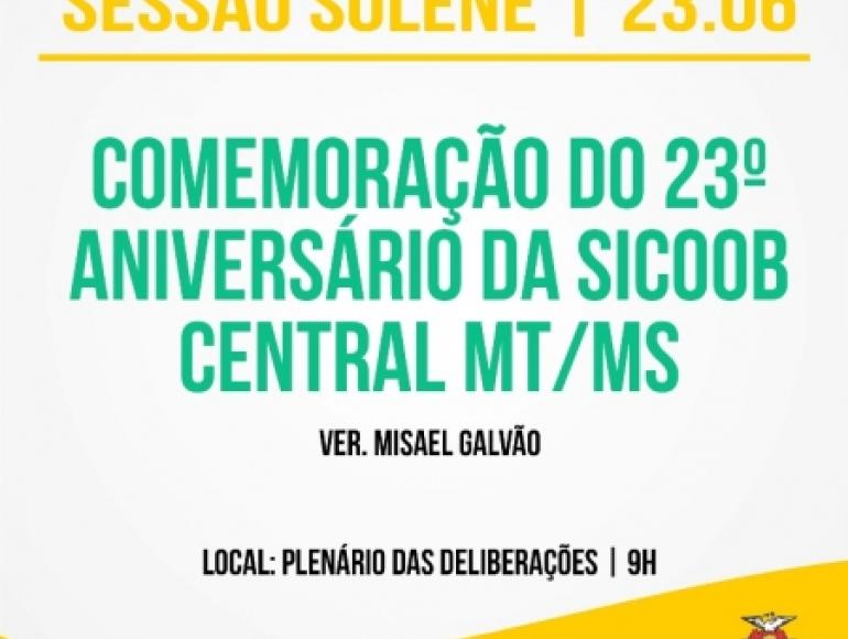 A Câmara Municipal de Cuiabá realiza Sessão Solene para comemorar o 23º aniversário do Sicoob, a sessão acontecerá nesta sexta-feira (23), às 09h:00, no Plenário da Deliberações da Câmara.
