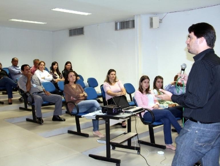 Odontólogo Ericson Camargo proferindo palestra anti-fumo