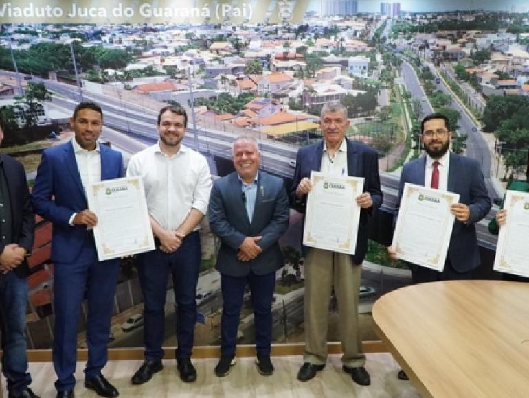 O presidente do Legislativo, vereador Chico 2000 (PL), entregou na tarde desta segunda-feira (18.12), Moções de Aplausos aos advogados e professores de direito que atuam na capital mato-grossense. O encontro foi marcado com os profissionais que não puderam estar presentes na Sessão Solene realizada em agosto, em homenagem ao Dia do Advogado.