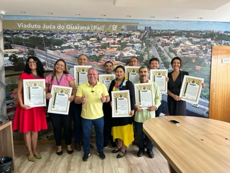 O presidente da Câmara Municipal de Cuiabá, vereador Chico 2000 (PL), homenageou na manhã quarta-feira (07.02), dez servidores que participaram de edições da Corrida do Legislativo, com o Título Honorífico da Ordem do Mérito Esportista "Joaquim Francisco de Assis".