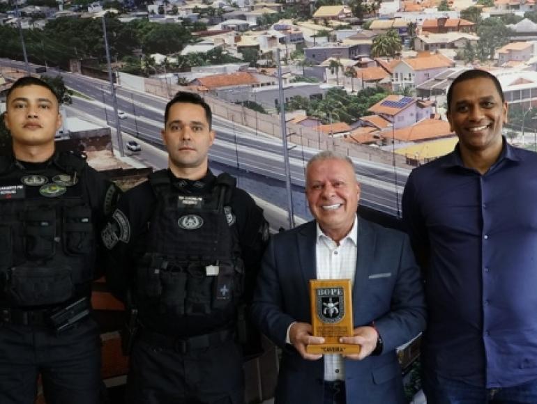 O presidente da Câmara Municipal de Cuiabá, vereador Chico 2000 (PL), recebeu na tarde desta quinta-feira (31), um título de reconhecimento do BOPE-MT, em homenagem a validação aos serviços prestados pelo Batalhão de Operações Policiais Especiais de Mato Grosso.