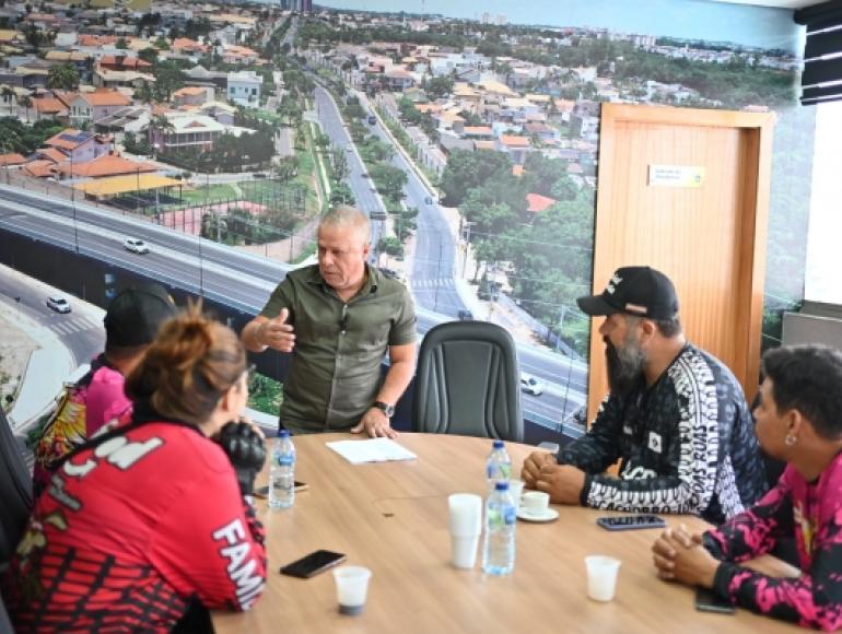 O presidente da Câmara Municipal de Cuiabá, Chico 2000 (PL) se reuniu na manhã desta quarta-feira (30), com o representante da categoria de motoboys da Capital, João Muniz, para apresentar um projeto inicial, visando propiciar um local estratégico e adequado para descanso dos trabalhadores.