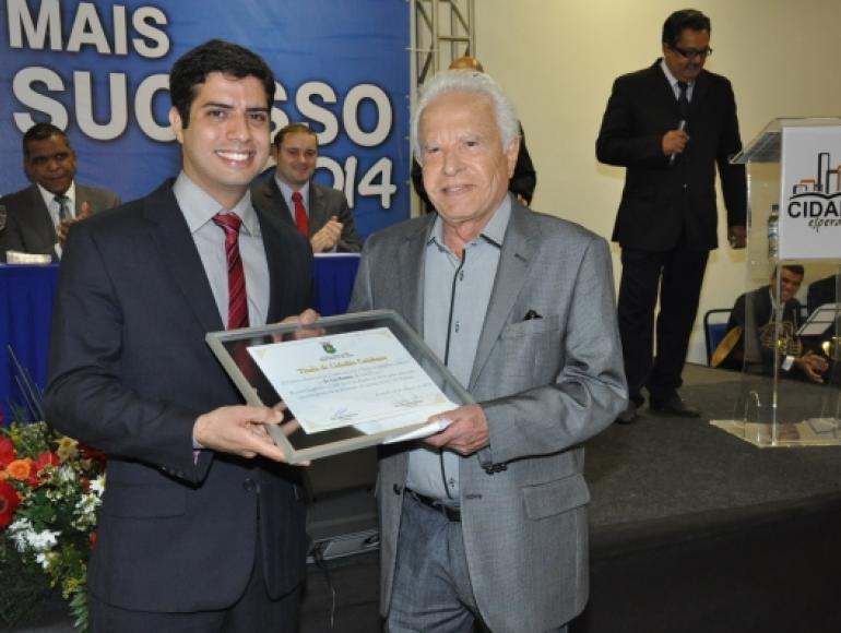 Na manhã desta sexta-feira (08) o apresentador foi homenageado com o Título de Cidadão cuiabano, entregue pelo Vereador Lilo Pinheiro (PRP) , em uma ação realizada pelo movimento CIDADE ESPERANÇA, projeto de cunho social que tem como proposta atender às comunidades carentes dos bairros de Cuiabá e Várzea Grande.