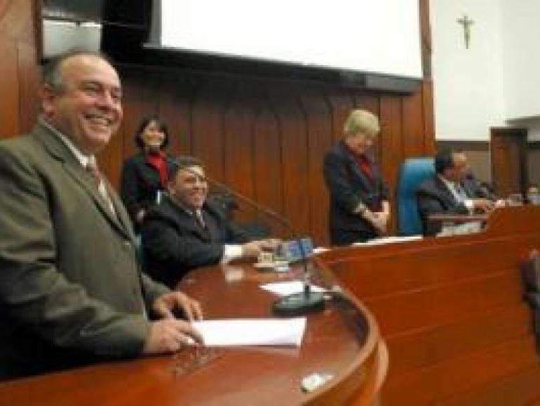 O professor Sérgio Cintra, primeiro suplente do PDT, assumiu nesta terça (11) o cargo de vereador por Cuiabá em substituição ao titular Adevair Cabral que se licenciou do cargo por 121 dias para cuidar de assuntos particulares. Profissional da educação há 30 anos, Cintra destacou, em seu discurso de posse, que um de seus objetivos durante os próximos quatro meses será contribuir efetivamente para melhorias neste setor. Por outro lado, elogiou o benefício que o cursinho pré-vestibular Cuiabá Vest tem trazido aos jovens carentes da Capital. "O Cuiabá Vest já possibilitou o ingresso de 2 mil alunos na universidade, mas podemos contribuir mais ainda". Cintra, que obteve 2.063 votos na eleição passada, avalia que o momento é de mudança e devem ser leis em prol de relações de humanização. "É chegada a hora de fazermos leis que humanizem as relações". Destaca que os representantes públicos devem servir de exemplo de boa conduta à sociedade. "Estamos passando por um período de muitas transformações sociais. Devemos ter um comportamento ético para servirmos de exemplo".