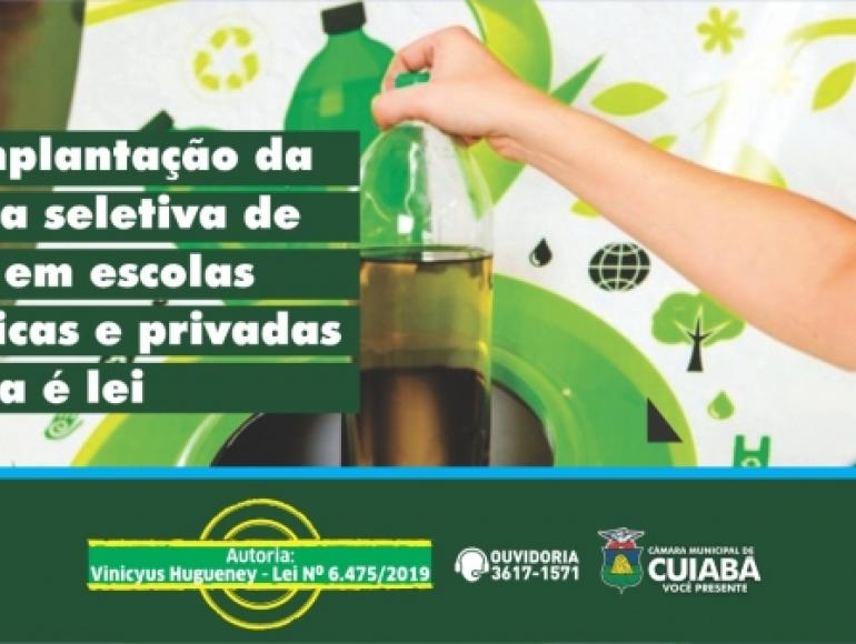 Foi aprovada na Câmara de Cuiabá a lei de autoria do vereador Vinicyus Hugueney (Progressistas), Nº 6.475 que estabelece a implantação da coleta seletiva de óleo de cozinha usado em creches e escolas do Município de Cuiabá.