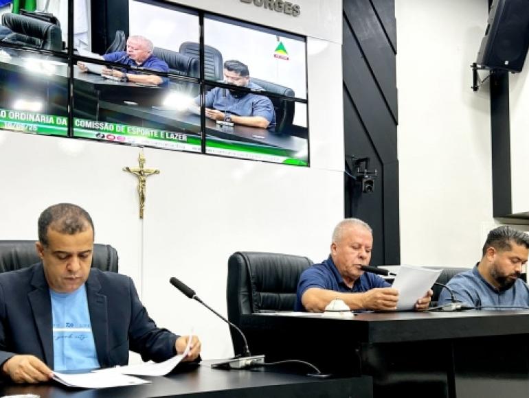 Os vereadores componentes da Comissão de Esporte e Lazer da Câmara Municipal de Cuiabá, Chico 2000 (PL), Marcus Brito Jr. (PV) e Wilson Kero Kero (PMB) deliberaram sobre dois projetos de lei durante a reunião que aconteceu na manhã desta quarta-feira (10), no Plenário da Casa de Leis.