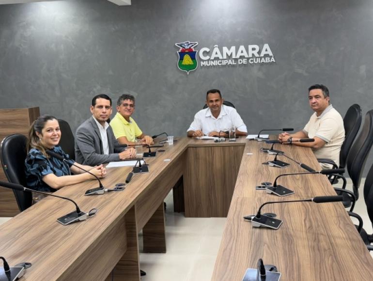 Reuniram-se na manhã desta sexta-feira (14), na Câmara de Cuiabá, os vereadores Sargento Joelson (PSB), Cezinha Nascimento (União Brasil) e Marcrean Santos (MDB), membros da Comissão de Regularização Fundiária. O secretário interino de Habitação e Regularização Fundiária, Willian Campos, e a adjunta Michelle Dreher estiveram presentes na reunião da comissão.