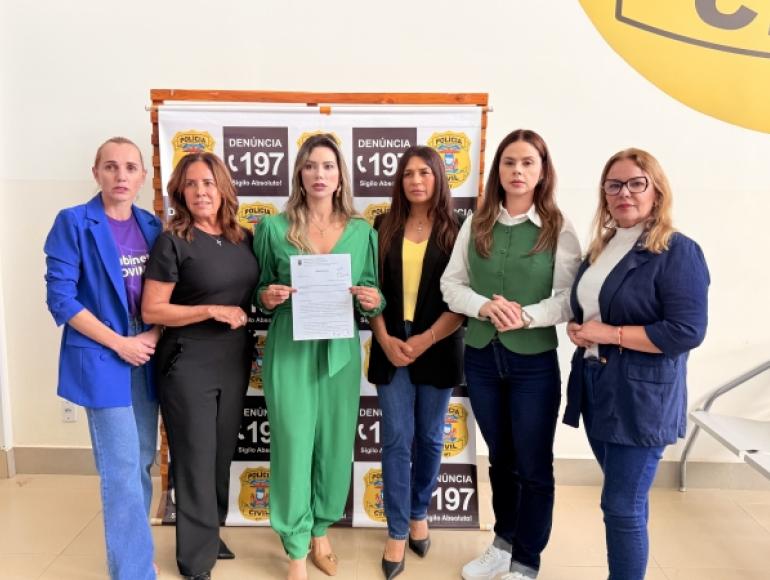 A delegada titular da Delegacia Especializada de Defesa da Mulher de Cuiabá, Judá Maali, informou que a instituição já recebeu o documento entregue pelas vereadoras e que a solicitação está em análise.