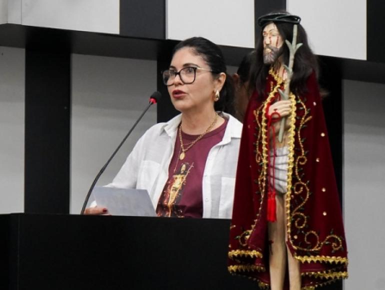 A celebração do padroeiro de Cuiabá e de Mato Grosso, o Senhor Bom Jesus, foi o tema da tribuna de livre da sessão desta quinta-feira (07.03). Uma das celebrantes, Idalba Reiners Correa da Costa, falou sobre a importância de comemorar a data, que faz parte da programação religiosa. Ela foi até a Câmara Municipal a convite do presidente da Casa, Chico 2000 (PL).