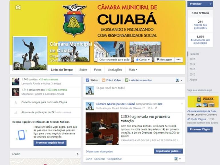 O cidadão cuiabano vem se mostrando cada vez mais interessado em acompanhar o trabalho dos vereadores da Câmara Municipal de Cuiabá através das redes sociais. Nos últimos anos o número de pessoas que segue a página oficial da Câmara cresceu. Importante ressaltar que este crescimento foi atingido através do interesse do próprio cidadão pelo conteúdo, o chamado alcance orgânico, sem qualquer investimento em propagadas ou links patrocinados.