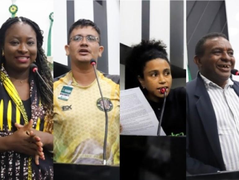 Diela Tamba Nhaque, Heleton Correa da Silva, representante dos motoboys e motoristas de aplicativos, Orientadora Social, Jaqueline de Oliveira e Edevande Pinto de França, presidente conselheiro municipal de promoção de igualdade racial