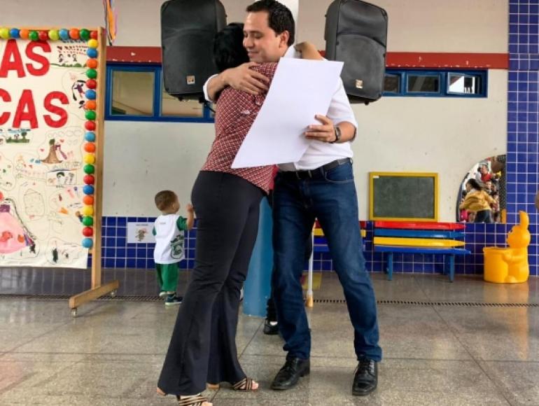 “Eu sou papai babão de primeira viagem e estou a quatro meses podendo experimentar esse doce que é poder ter uma criança em casa. Nada é mais importante na vida do ser humano do que um filho e hoje eu tenho essa sensação. Valorizar o professor é saber que nossos filhos estão sendo bem orientados”, ressaltou o parlamentar.