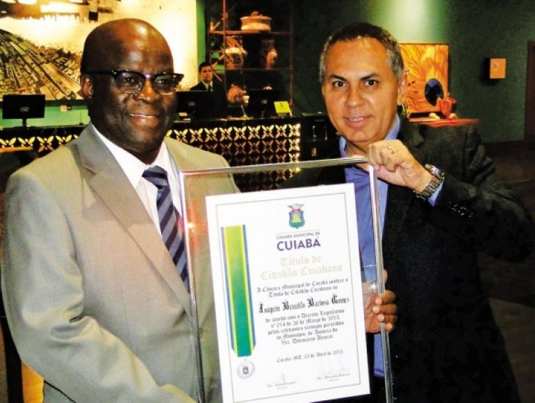 O ex-presidente do Supremo Tribunal Federal (STF), ministro aposentado Joaquim Barbosa, recebeu na noite desta quinta-feira (09.04), o Título de Cidadão Cuiabano. A honraria foi aprovada por unanimidade pelos vereadores da Câmara Municipal de Cuiabá através de Decreto Legislativo de autoria do vereador Dilemário Alencar (PTB).