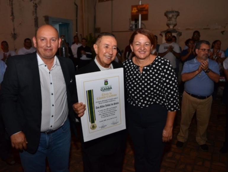 A Câmara de Vereadores de Cuiabá concedeu o título de cidadão cuiabano ao Arcebispo da Arquidiocese de Cuiabá, Dom Milton Antônio dos Santos, que completou 15 anos na Capital. A honraria foi entregue na noite desta segunda-feira (10), pelo autor do Decreto Legislativo, vereador Delegado Marcos Veloso (PV).