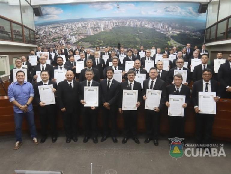 Em alusão ao Dia do Maçom, comemorado no Brasil em 20 de agosto, os vereadores Lilo Pinheiro (PDT) e Delegado Marcos Veloso (PV) realizaram na manhã desta segunda-feira (26) uma sessão solene para homenagear, com entrega da honraria Moção de Aplausos,  aproximadamente 60 irmãos maçons. A solenidade foi realizada no Plenário das Deliberações da Câmara Municipal de Cuiabá.