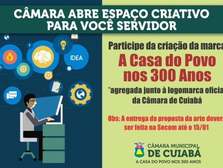 A data para recebimentos do logotipo da Câmara Municipal de Cuiabá , que ilustra  novo slogan da Casa de leis- “A Casa do Povo nos 300 Anos", vai até a próxima terça-feira ( 15).  Numa campanha à inclusão artística, a presidência do Legislativo da capital convida o funcionalismo da Casa de Leis para que elabore logotipo referente ao tricentenário da capital. O desenho vencedor vai ser agregado ao slogan da instituição parlamentar, "A Casa do Povo nos 300 Anos".