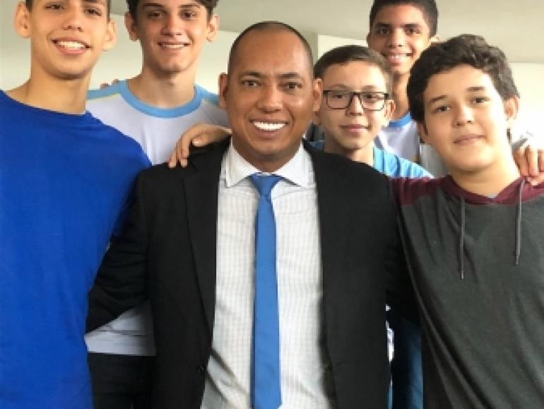 Estudantes do 9º ano da Escola Adventista estiveram na manhã dessa terça-feira (28-08), no gabinete do vereador Juca do Guaraná. O objetivo da visita foi apresentar ao parlamentar um projeto de revitalização de uma praça no bairro Araés, em Cuiabá. O projeto contou com apoio do arquiteto Joel Gomes.
