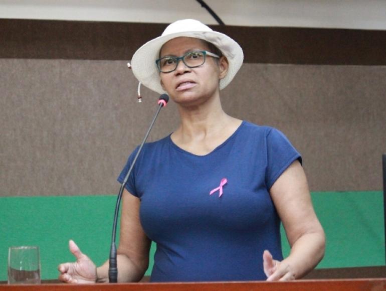 A Profª Jacy Proença esteve participando da Tribuna Livre, na Câmara Municipal de Cuiabá, nesta terça-feira (31), para fazer um alerta as mulheres quanto ao diagnóstico precoce do Câncer de Mama, na data em que finaliza o Outubro Rosa.