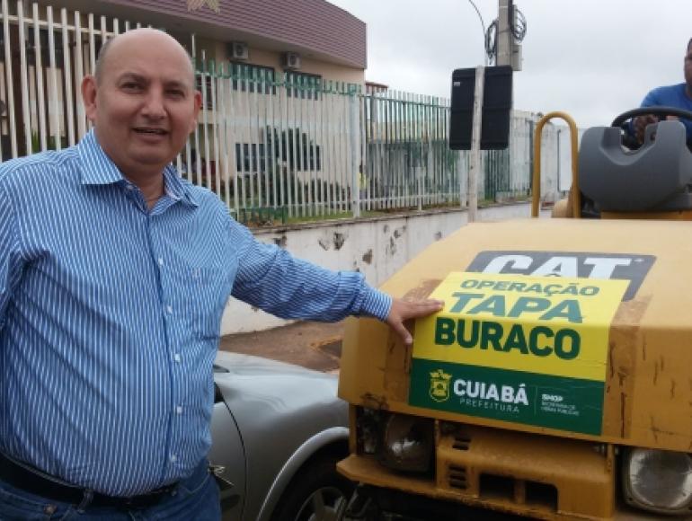 O Vereador Marcos Veloso (PV) participou do lançamento da Operação Tapa Buraco da Prefeitura de Cuiabá junto com o prefeito Emanuel Pinheiro nesta sexta feira (27).