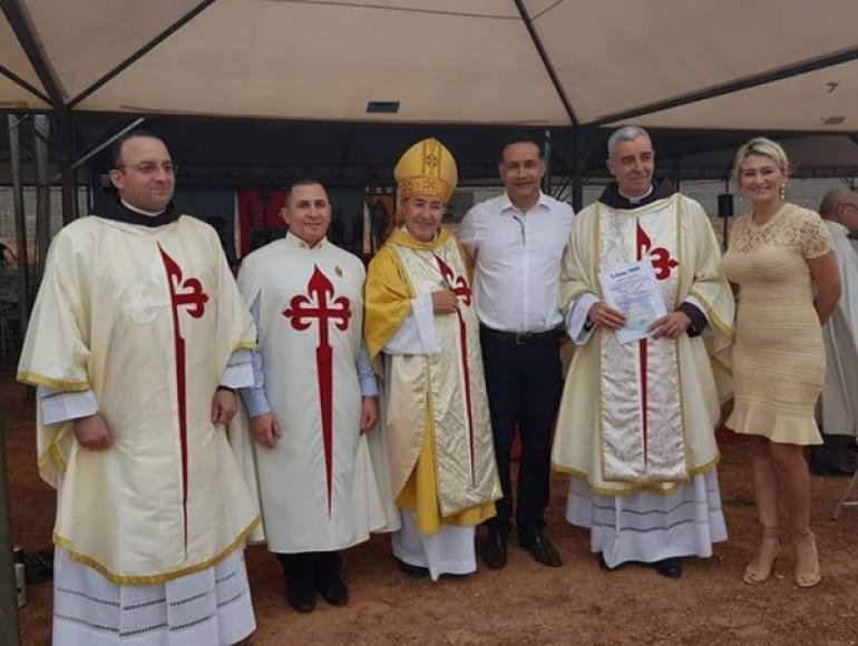 V. Ex.ª Revma Arcebispo Dom Milton Santos preside Santa Missa e abençoa a pedra fundamental da construção do Centro Mariano dos Arautos do Evangelho em Cuiabá- localizada no Rodoanel Norte próximo ao Brasil Beach. Contou com autoridades civis e religiosas, membros missionários da Obra e parte do povo de Deus. Entre as autoridades  V. Ex.ª Revma Arcebispo Dom Milton, V. Revma Padre Mauricio Sucena EP, V. Revma Padre Max Adriano EP, V. Revma Padre Colombo EP, Secretário de meio ambiente Sr Joarez Samaniego (representando a prefeitura de Cuiabá) e o Vereador Luis Claudio Sodre.
