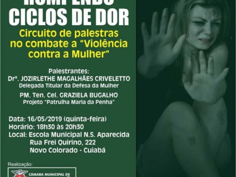 A Câmara Municipal de Cuiabá dá início nesta quinta-feira (16) ao circuito de palestras no combate à violência contra a mulher. A primeira será realizada no bairro Novo Colorado, na Capital com o tema “Rompendo Ciclos de Dor”.
