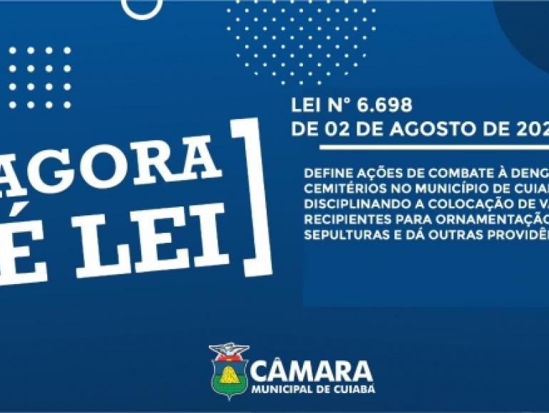 Foi sancionada a lei nº 6.698 que define ações de combate à dengue nos cemitérios no Município de Cuiabá. As novas medidas disciplinam a colocação de vasos, recipientes e outros objetos para ornamentação de sepulturas.