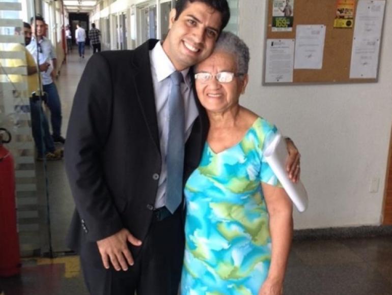 Vereador Lilo Pinheiro junto a idosa na Câmara Municipal
