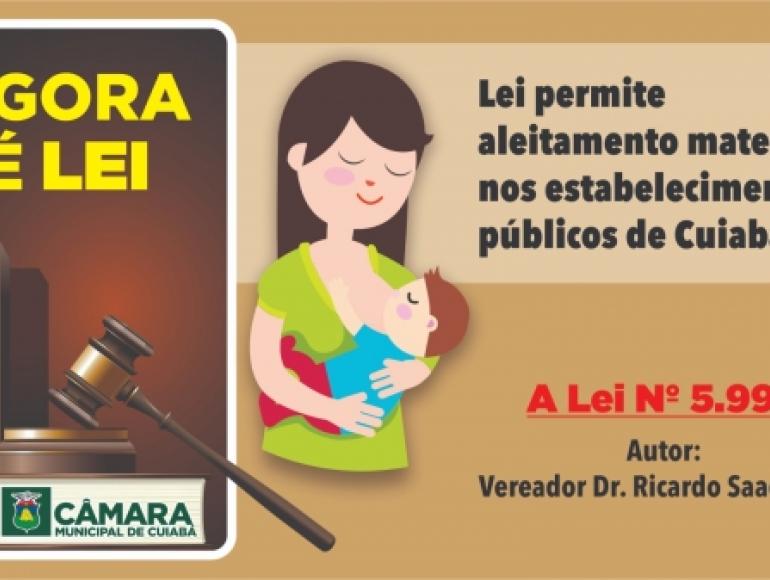 A lei de Nº 5.999, permite o aleitamento materno em estabelecimentos públicos, situadas no Município de Cuiabá, e está em vigor há quase oito anos. A lei prevê uma multa de R$ 500 a quem impedir a amamentação em público. Em caso de reincidência, o valor dobra.